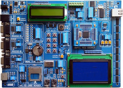 SHPIC3開發板只需要更換相應的主控板,便可以支持dsPIC24系列,dsPIC30系列和dsPIC33系列16位單片機。