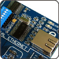 以太網控制器模塊--采用Microchip的ENC28J60芯片,通信完全符合IEEE802.3規格,高可達10M的通信速率,通過兩中斷功能SPI接口實現與主控制器通信.