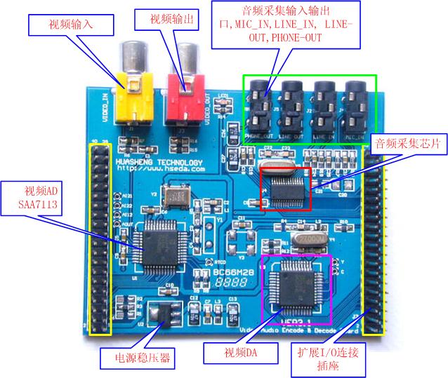 7.板上音頻采集輸出部分接口有LINE IN, LINE OUT, MIC IN,